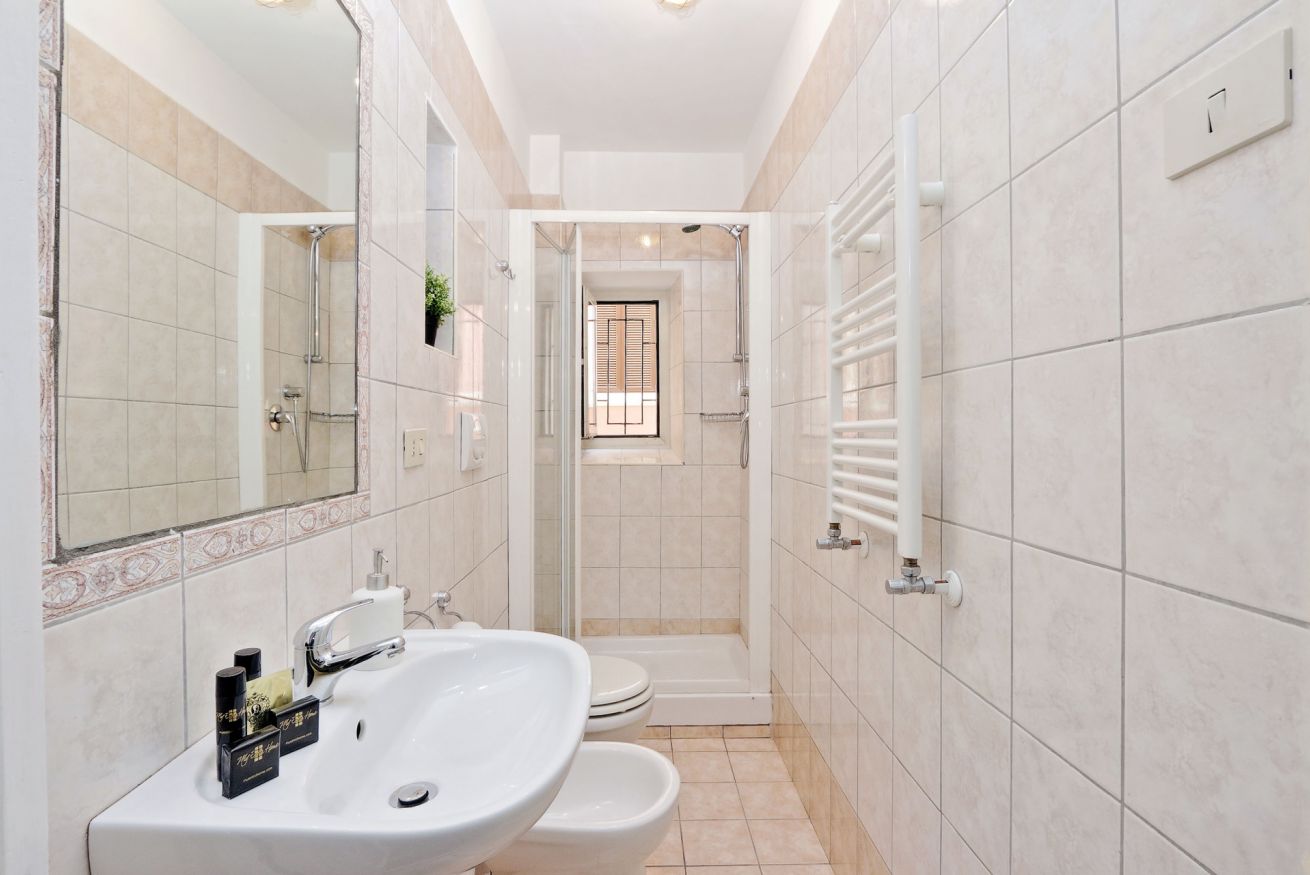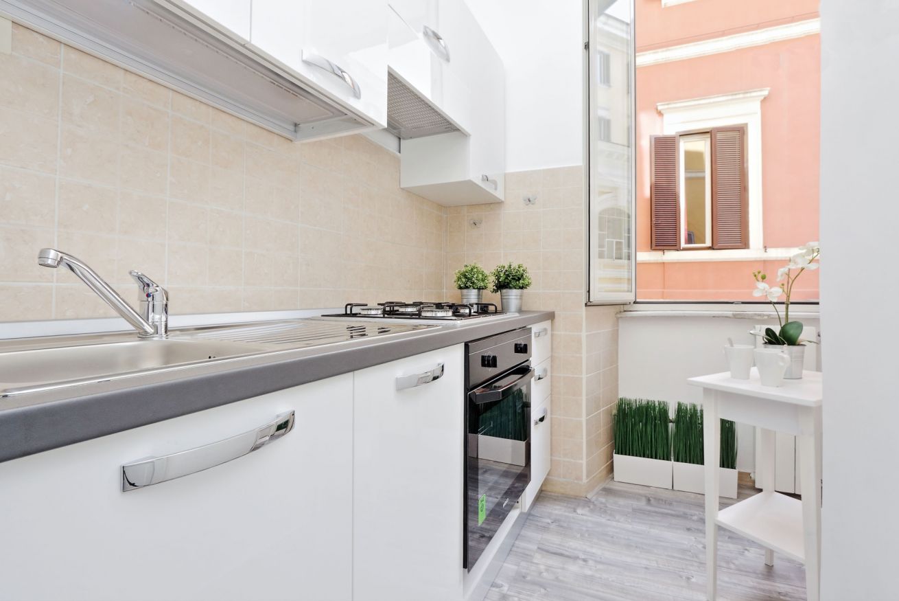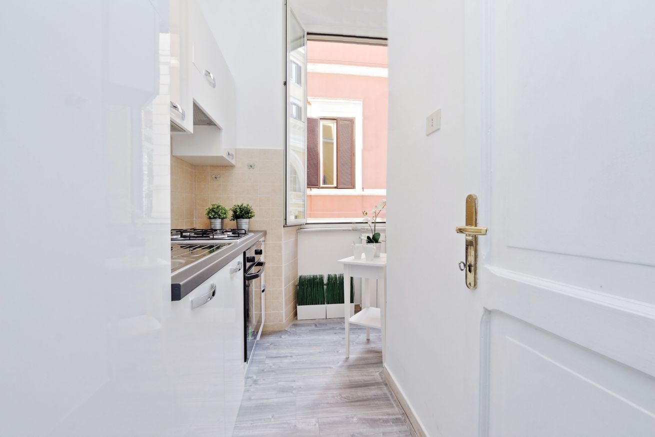 Dispone di un soggiorno accogliente con divano letto matrimoniale, tavolo da pranzo e smart TV, una cucina attrezzata di tutti gli utensili ed elettrodomestici, un bagno completo con doccia ed una camera matrimoniale silenziosa e luminosa, ideale per riposare dopo una giornata tra i vicoli della città eterna.
